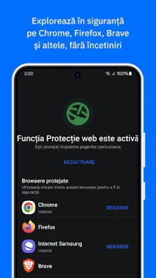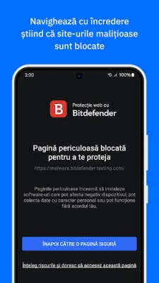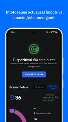 Bitdefender Mobile Security & Antivirus oferă o rată de detecție de 100% împotriva amenințărilor digitale, scanând proactiv aplicațiile, descărcările și fișierele pentru a elimina automat orice risc, fie că este vorba de viruși, adware sau ransomware. Protecția web avansată vă menține în siguranță pe internet, ferindu-vă identitatea și informațiile financiare de site-urile malițioase și fraudele online. Mai mult, Alertele de Scam analizează în timp real linkurile suspecte din mesajele text și aplicațiile de chat, blocând conținutul periculos înainte ca acesta să vă poată afecta și prevenind răspândirea sa. Tehnologia de detecție a anomaliilor aplicațiilor monitorizează comportamentul software-ului instalat, identificând amenințările emergente chiar înainte ca acestea să fie oficial recunoscute ca malware.