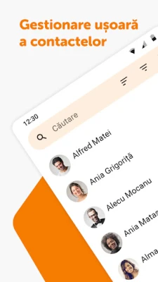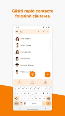 Uitați de agendele complicate; cu Contacte simple, puteți crea liste personalizate de favoriți și grupuri inteligente. Aceste grupuri nu sunt doar pentru organizare, ci și pentru comunicare rapidă, permițându-vă să trimiteți mesaje sau e-mailuri simultan mai multor persoane, economisind timp prețios. Puteți redenumi grupurile cu ușurință pentru o gestionare intuitivă. Interfața oferă butoane la îndemână pentru apeluri sau mesaje directe, iar funcția de căutare inteligentă scanează toate câmpurile vizibile pentru a localiza instantaneu persoana căutată. Aveți control total asupra informațiilor afișate, putând personaliza câmpurile vizibile și ascunde cele mai puțin relevante.