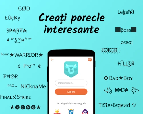 Creează porecle unice și elegante pentru jocuri, evitând numele deja utilizate. Personalizează-ți numele cu fonturi stilate și caractere speciale pentru a te evidenția. O soluție excelentă pentru gameri ce doresc originalitate sau pentru a-și înfrumuseța biografia cu text fantezist. Descoperă stilul perfect!