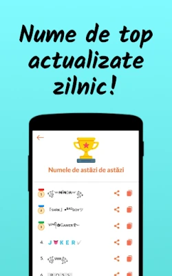 Blocajul creativ devine o amintire cu generatorul aleatoriu de nume din Nick Finder. Ai nevoie urgent de o poreclă ingenioasă, dar toate variantele tale preferate sunt deja luate? Nu-ți face griji! Aruncă zarurile virtuale și lasă aplicația să-ți propună mii de opțiuni fascinante, cu fonturi super cool și un text rafinat, asigurându-te că vei găsi întotdeauna ceva pe placul tău. Iar vestea bună este că această sursă inepuizabilă de inspirație este la dispoziția ta fără nicio limită. Creează câte nume dorești, pentru câte sesiuni de joc sau profiluri sociale ai nevoie, iar apoi distribuie-le cu ușurință echipei tale sau prietenilor, redefinind modul în care te prezinți lumii.