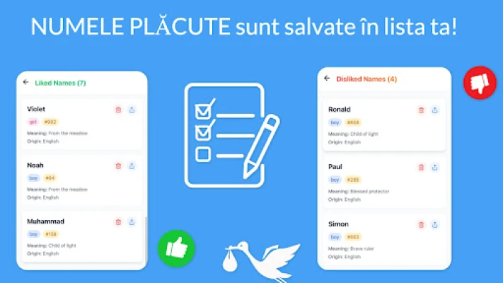 Călătoria de a alege numele perfect pentru noul membru al familiei este o aventură plină de emoție și responsabilitate. Aplicația Generator de Nume pentru Bebei este companionul tău indispensabil, oferind o resursă vastă, plină de inspirație, unde vei descoperi nume de băieți și fete, de la cele consacrate la cele rare, fiecare cu povestea sa. Fie că ești pe cale să întâmpini un bebeluș sau doar explorezi opțiuni, acest instrument îți luminează calea, dezvăluind semnificațiile profunde și originile fascinante ale fiecărui nume.