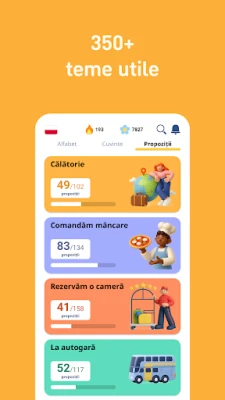 Conținutul generos al FunEasyLearn te echipează cu instrumentele necesare. Ai la dispoziție peste 6.000 de cuvinte în poloneză, organizate ingenios pe 7 niveluri și 200 de teme, acoperind de la substantive esențiale la adjective și verbe frecvente. Alături de acestea, peste 5.000 de expresii uzuale, structurate în 10 niveluri și 120 de teme, te pregătesc pentru orice conversație, de la cele simple la cele mai complexe. Fie că ești începător, la un nivel intermediar sau avansat, FunEasyLearn îți îmbogățește constant vocabularul și fluența verbală printr-o strategie unică, elaborată de lingviști și profesori dedicați. Această abordare inovatoare integrează alfabetul cu regulile de citire, cuvintele și expresiile, permițându-ți să vezi, să auzi pronunția corectă a nativilor și să practici prin jocuri interactive de ascultare, scriere și vorbire.