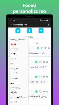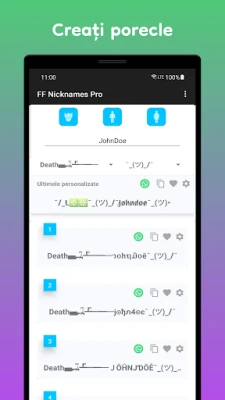 „Nickname Generator & Simboluri" te ajută să creezi porecle elegante și originale pentru jocuri și rețele sociale. Alege din peste 50.000 de combinații, peste 100 de fonturi și 450 de decorațiuni pentru a te distinge. Generează rapid și gratuit un nume unic!