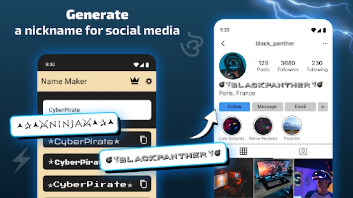 Nu doar pentru pasionații de jocuri, Nickname Maker: Gamer Names redefinește și felul în care te prezinți pe rețelele sociale. Reînnoiește-ți biografia cu fonturi expresive și simboluri relevante, creând un profil care povestește despre tine înainte de a rosti un cuvânt. Aplicația este concepută pentru a fi intuitivă, facilitând exprimarea personalității tale unice, indiferent de context.