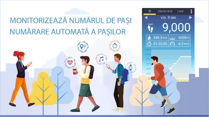 Descoperă precizia avansată a pedometrului nostru, care utilizează o tehnologie proprietară pentru a asigura o numărare exactă a pașilor prin modul său standard. Indiferent dacă ești un entuziast al fitness-ului sau pur și simplu vrei să-ți monitorizezi mersul, vei aprecia graficele detaliate care îți permit să urmărești progresul în timp real și retrospectiv pentru fiecare metrică. Mai mult, ai la dispoziție o selecție de design-uri moderne și variate pentru a personaliza interfața după gustul tău, făcând fiecare plimbare o experiență plăcută. Un avantaj major este consumul redus de energie: fără a folosi GPS-ul, aplicația protejează bateria telefonului, oprind complet consumul atunci când nu este activă. Și cel mai bun lucru? Toate aceste funcții sunt disponibile complet gratuit, fără costuri ascunse sau abonamente.