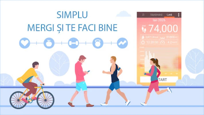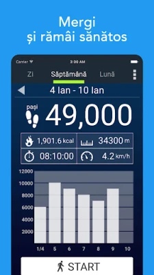 Concepută pentru o gamă largă de utilizatori, această aplicație este perfectă pentru oricine dorește să adopte un stil de viață mai activ. Fie că ești la dietă și vrei să monitorizezi caloriile arse, ești un jogger pasionat sau pur și simplu îți place să te plimbi, vei găsi un instrument valoros în acest pedometru. Este ideală pentru profesioniștii care merg mult la serviciu, pentru cei care doresc să-și formeze un obicei sănătos de a merge pe jos, sau pur și simplu pentru a te simți în formă. Interacționează cu graficele printr-o simplă atingere pentru a vizualiza detalii specifice și glisează pentru a accesa istoricul datelor înregistrate până în ziua precedentă. Pentru o precizie maximă în calculul caloriilor, distanței și vitezei, nu uita să introduci vârsta, sexul, greutatea și lungimea pasului. Această aplicație te motivează să te miști și să-ți atingi obiectivele de fitness, oferind o experiență de utilizare simplă și eficientă direct de pe smartphone-ul tău.
