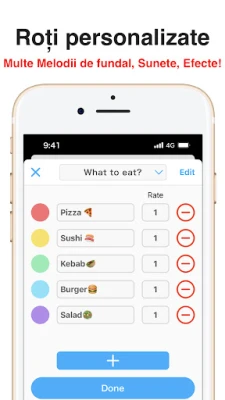 Personalizarea atinge noi culmi: poți asocia muzică și efecte sonore distincte fiecărei rulete, asigurându-te că experiența este întotdeauna proaspătă. Pe lângă funcțiile creative, aplicația oferă și o funcție de blocare cu parolă pentru confidențialitate și un Mod Întunecat pentru o vizualizare optimă. De la alegerea meniului zilnic sau a restaurantului, până la jocuri de societate și evenimente speciale precum nunți sau extrageri, această ruletă este instrumentul multifuncțional de care ai nevoie. Descoperă o aplicație de ruletă cu o multitudine de funcții pe care nu le vei găsi nicăieri altundeva.