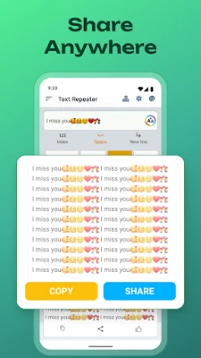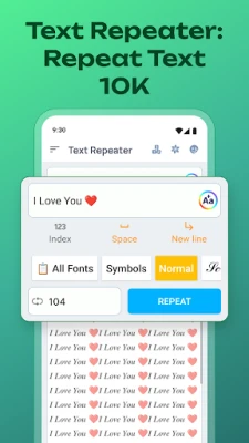 Transformă-ți mesajele obișnuite în convorbiri captivante cu Text Repeater. Personalizează-ți textul cu suport emoji și opțiuni variate de formatare a fonturilor. Este instrumentul ideal pentru mesaje memorabile și atrăgătoare, ușor de utilizat.